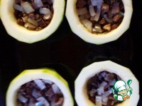 Далее раскладываем по кабачкам обжаренное сердце с луком. |