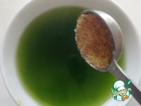Дальше налейте кипяток в чашу с матча и добавте 1 ст. л сахара (можно заменить мёдом). |