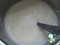 Оставшиеся 2 яйца разделить на желтки и белки. Желтки смешать со сметаной, творогом, крахмалом и 6 ст. л. тростникового сахара. Смесь взбить миксером. |