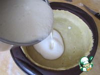 Форму с тестом достать из холодильника и вылить туда творожную массу. |