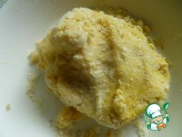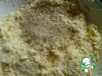Сверху просеять 1 стакан муки, смешанной с содой, и перетереть пальцами в крошку. |