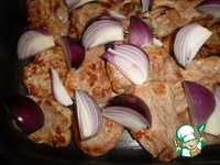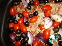Описание: В оригинале это свинина, но я свинину стараюсь не употреблять, а вот муж ее обожает. Готовила это блюдо частично из свинины, частично из телячьей вырезки. Время приготовления мяса одно и то же. Красивое оригинальное блюдо. Можно подавать на праздничный стол. Если готовить с телячьей вырезкой, то низкокалорийное. Овощи получаются "аль денте" то есть упругие.