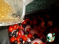 Помидорки "черри" и маслины так же присоединяются. К сожалению, процесс добавления маслин запечатлеть забыла |