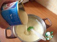 К ним добавить 1 банку сгущенки, ванилин, крахмал и перемешать. |