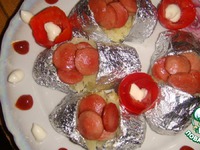 Сверху кладём сосиски и подаём к столу. (Доча была на седьмом небе от гордости, всем говорила, что она приготовила) ПРИЯТНОГО АППЕТИТА! |