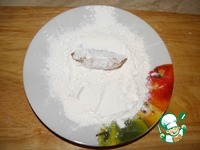 В тарелку насыпать крахмал, и хорошо обвалять в нем каждый кусочек. ( специи проверяем, можно чуть соли и перца) |