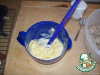 Масло (я брала сливочный маргари, на вкус печенья это ни сколечко не повлияло)размять до состояния сметаны, можно чуточку подогреть в микроволновке. |