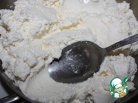 Оставить при комнатной температуре на 12-14 часов. Выстелите дуршлаг тканью и выложите образовавшийся сгусток шумовкой в ткань. |