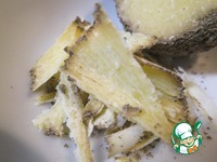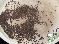 Прогрейте черный горошковый перец на сухой сковороде и измельчите в кофемолке или в ступке. Измельчать надо не очень мелко. |
