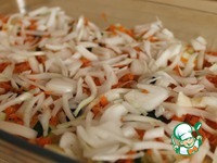 2 слой Морковь натираем на крупной терке, лук кубиками. Все обжарить на растительном масле |