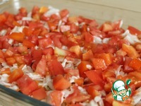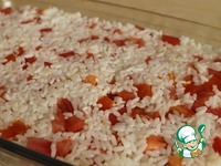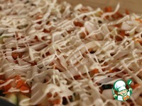 Сеточка из майонеза. Запеканку полить бульоном из кубиков (это в оригинале. Я же просто немного перчу и солю каждый слой) |