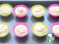 Формочки, у меня силиконовые наполняем основой для капкейков. Ставим в разогретую до 175 гр. духовку на 25 минут. |
