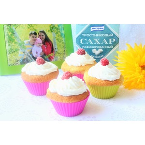 Для начала делаем крем. Сахар для приготовления капкейков используем ТМ "Мистраль". |