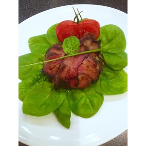 Достаем и наслаждаемся вкуснейшим блюдом! Я подержала еще 3 минутки под грилем, чтобы бекон стал очень хрустящим! С нежной "котлеткой" он сочетался просто невыносимо восхитительно! |