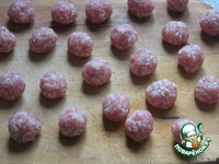 Из фарша скатать небольшие тефтельки размером с грецкий орех. |