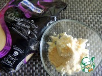 В творог добавляем сахар, я использовала мелкий сахар от Мистраль. |