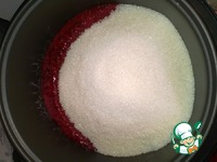 Переливаем получившуюся массу в емкость, в которой будет вариться наше варенье. Засыпаем сахар. Перемешиваем. Оставляем на сутки. |
