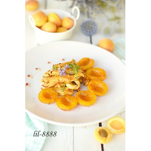 5. На тарелку выложить полоски филе, абрикосы и посыпать свежемолотым черным перцем. Приятного аппетита! |