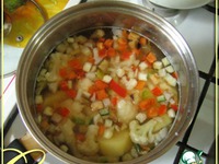 когда картошка почти готова, добавляем овощи, подсаливаем |