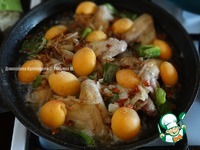 Выложить к крыльям зажарку, абрикосы, добавить имбирь, паприку, чеснок, посолить по вкусу; |