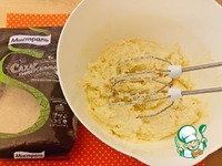 В мягкое масло насыпать тростниковый сахар ( я использую "Универсальный" ТМ Мистраль) и взбить до пышной массы. |