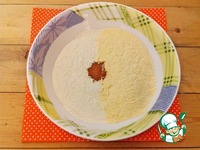 Соединить 2 вида муки, добавить разрыхлитель, корицу и соль. Перемешать. |