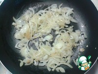 Лук режем полукольцами и, затем, в другой сковороде, до золотистого цвета обжариваем его в растительном масле. |