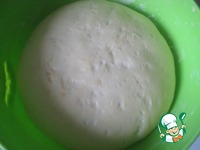Опять кладем тесто в миску, накрываем салфеткой и оставляем еще на 1 час. Тесто снова хорошо подошло. |