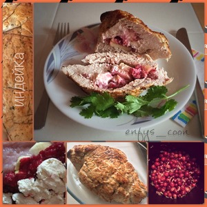 Описание: Рулет из филе индейки, запеченный с кисло-сладким чатни из клюквы, меда, апельсина и имбиря. Потребуется время, что бы приготовить это блюдо, но оно того стоит! Мясо получается нежным и сочным, а кисло сладкая начинка, которой придаст мягкость творожный сыр, отлично дополняют друг друга.