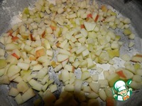 Форму смазываем сливочным маслом и присыпаем мукой, выкладываем яблочки |
