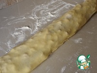 БОльшую часть теста раскатываем в тонкий прямоугольник. Примерные размеры 35х70. |