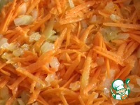 Половину лука тушим с добавлением щепотки сахара. Как только начинает поджариваться, добавляем морковь и тушим до полуготовности. |