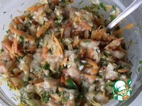 Мелко режем куриное филе, добавляем соль, перец и майонез. Перемешиваем и убираем в холодильник. |