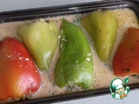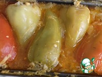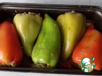Описание: Перцы фаршированные куриным мясом и овощами в духовке под фольгой.