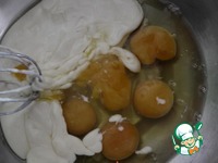 Соединить яйца со сметаной. Хорошо перемешать. |