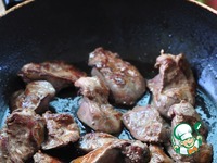 Подготовить необходимые продукты. Фрукты, овощи помыть, почистить, порезать крупным кубиком. Печень зачистить от пленок и жира, промокнуть бумажным полотенцем чтобы была сухой. |