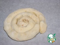 Перенести ее на противень и начиная с центра скрутить в форме улитки. |