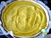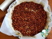 Накрыть основание для пирога пекарской бумагой (или фольгой) и выложить фасоль (горох или другие используемые Вами "утяжелители"). Выпекать в разогретой духовке 15 минут. |