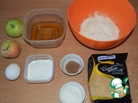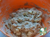 В сухую смесь добавить яблочный сок, яйцо и яблоки. Все перемешать. |