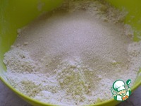 Просеять муку в миску, добавить разрыхлитель, холодное сливочное масло (порезать на кубики). |