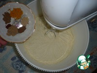 Добавляйте по одному яйцу с ложкой муки (что бы масса не свернулась) и продолжайте растирать до однородности. |