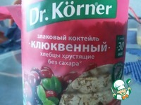 Приступим. Пачку обезжиренного творога смешиваем с сахарозаменителем, у меня стевия. Можно обойтись медом, увеличив пропорцию. Берем два хлебца, у меня клюквенные. |