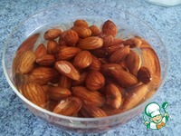 Миндаль заливаем кипятком, чтобы потом легче было очищать. |