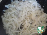 Лук нарезаем полукольцами, обжариваем на сковороде до выпаривания жидкости. |