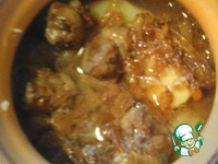 В горшочки кладем картофель, печень с луком, солим, перчим. Добавляем клюквенно-медовый сироп и заливаем картофельной водой так, чтобы продукты были закрыты почти полностью. |