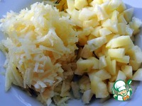 Грушу очищаем, половину режем кубиками, а другую половину трём на тёрку. Поливаем соком лимона. |