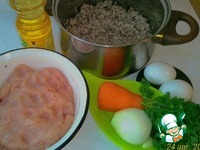 Добавить к гречке куриный фарш, яйца, посолить, поперчить по вкусу. Хрошенько перемешать. |