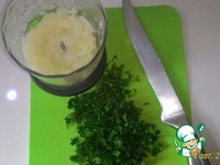 Бабуля терла лук и чеснок на терке, я воспользовалась блендером (прогресс не стоит на месте!). Зелень мелко нарезать. |