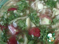 В просторную емкость положить мелконарезанный сладкий перец и чеснок (полукольцами или соломкой), лук (полукольцами), и помидор. Залить маринадом... |