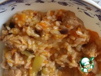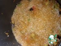 Добавляем рис (2 мультистакана) и воду (2 мультистакана). Не мешаем. ставим на программу рис на 25 минут. ЗА 3 минуты до конца программы солим, перчим и мешаем. |